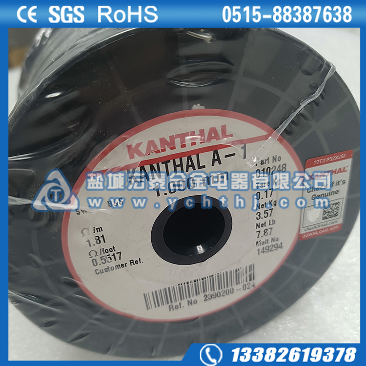 7.产品说明:康泰尔Kanthal A-1电热丝是国内市场上应用最为广泛的进口电热合金材料。具有耐温度高,表面负荷高,使用寿命长等优点,主要应用于热风枪、燃烧器、电子烟雾化器、高负荷高温窑炉等。