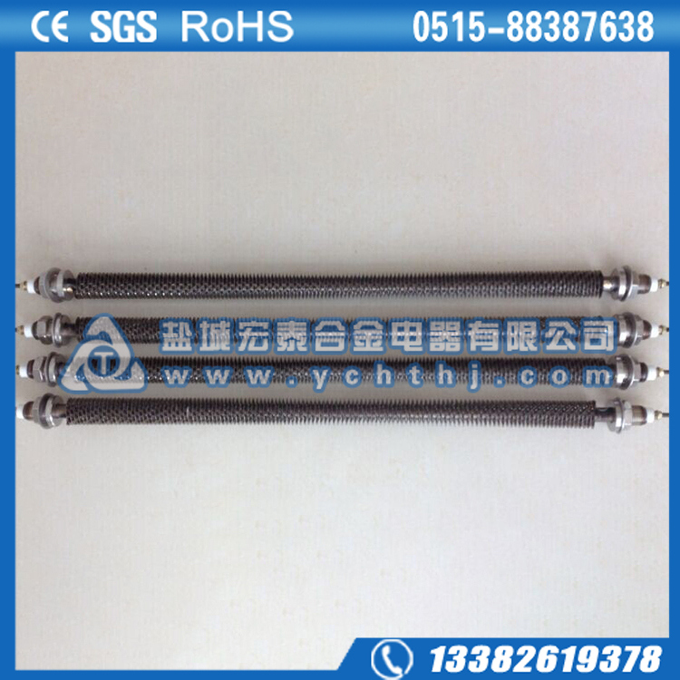 翅片式电加热管,是在普通元件表面缠绕金属散热片,与普通元件相比散热面积扩大了2~3倍,即翅片元件所允许的表面功率负荷是普通元件的3~4倍。由于元件的长度缩短,使得本身的热损失减小,在相同的功率条件下具有升温快、发热均匀、散热性能好、热效率高、使用寿命长、加热装置体积小,成本低等优点。根据用户要求进行了合理的设计,便于安装。