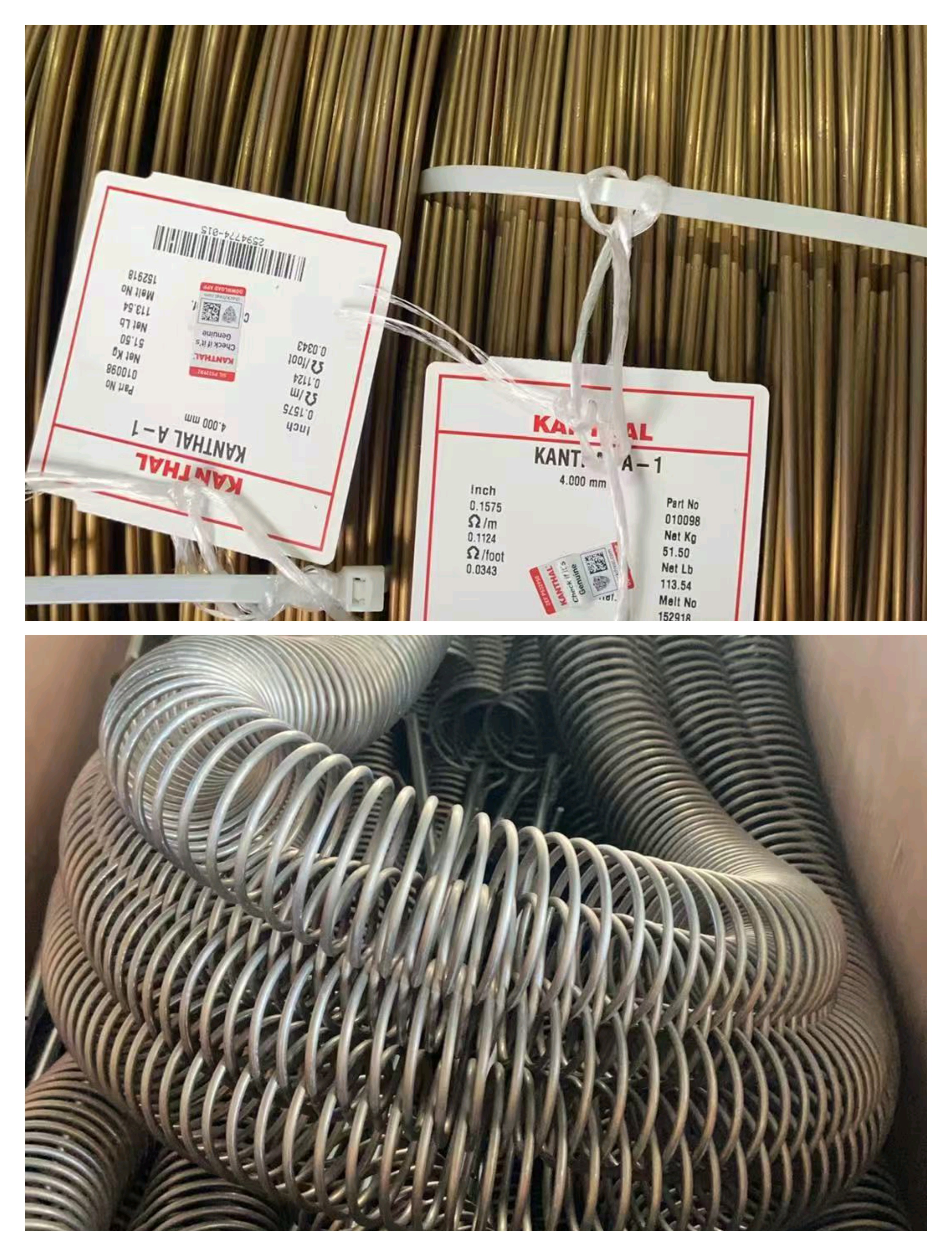 进口电热丝的表面功率负荷远超国产产品,Kanthal系列建议设计负荷范围为1.8-3.5W/CM²,是国产电热丝0.8-1.5W/CM²标准的2倍以上 。更高的功率负荷意味着相同功率需求下耗材更少、元件尺寸更小,既能减轻系统承重,又能节省安装空间。寿命方面,铁铬铝材质进口电热丝的使用寿命可达镍铬合金的2-4倍,长期使用能显著降低更换成本与停机损失。